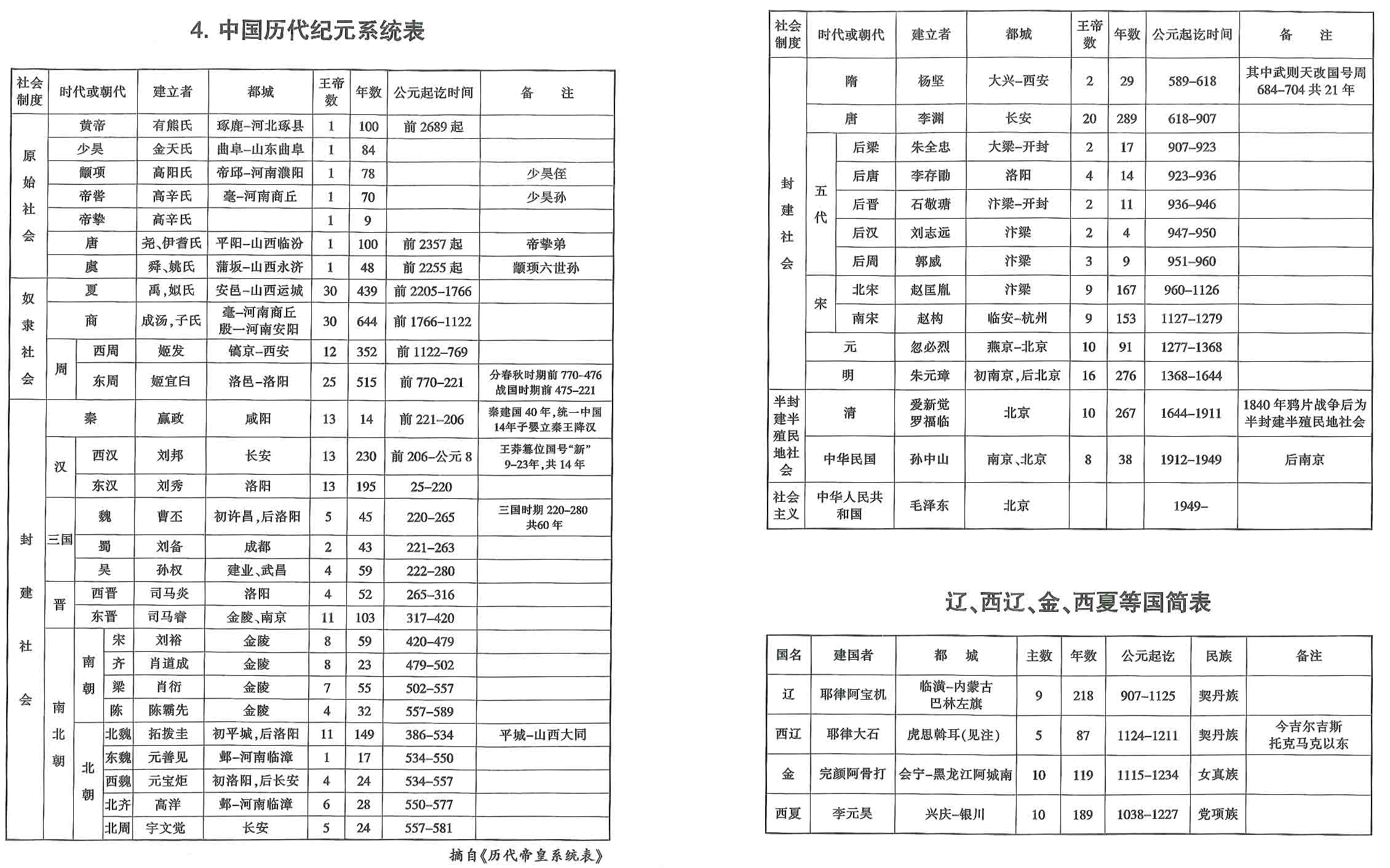 4.中国历代纪元系统表